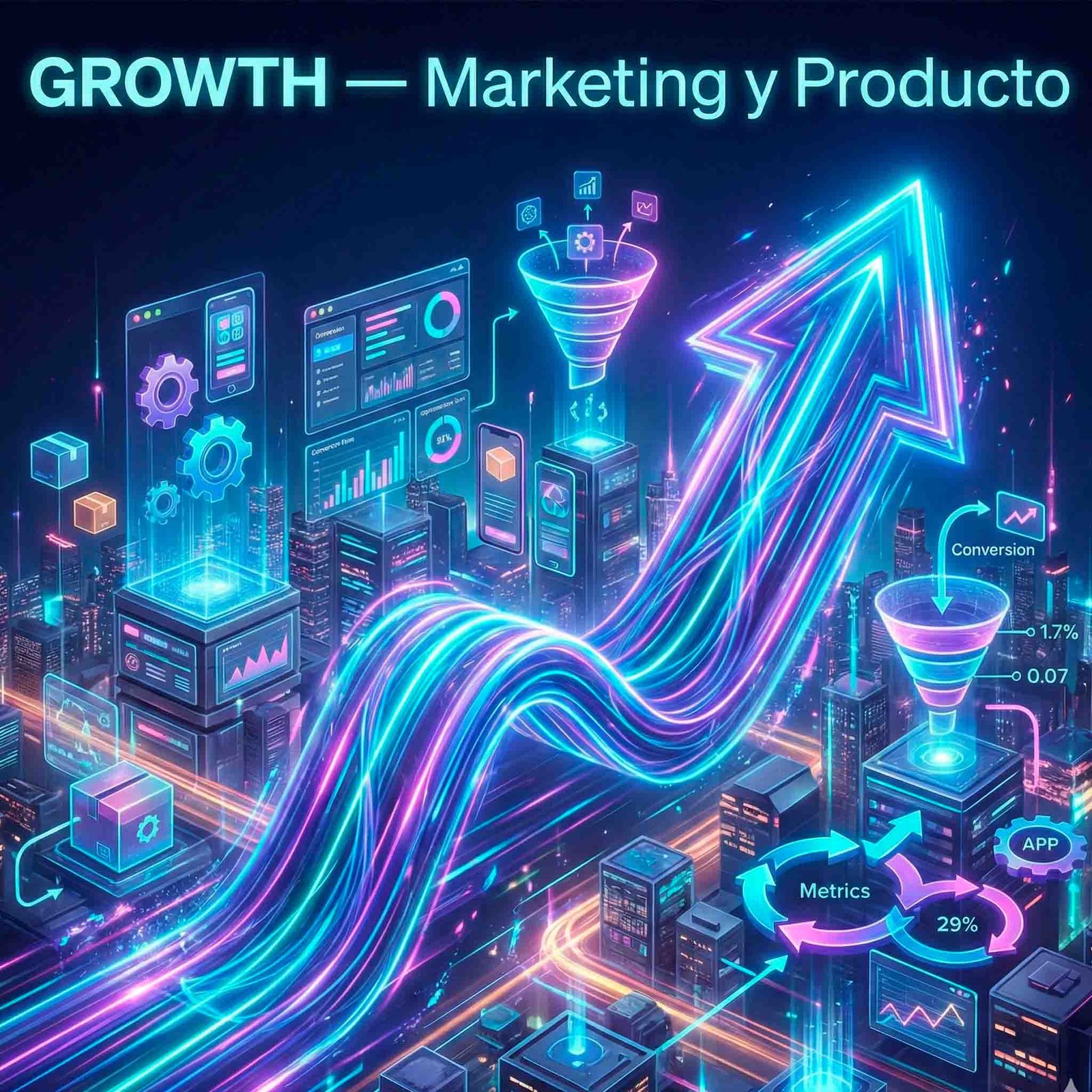 Domina A/B testing, CRO, analytics, comportamiento humano, growth, e-commerce, storytelling, oratoria y más… todo dentro de un método certificado que replica cómo trabajan los equipos reales de crecimiento.